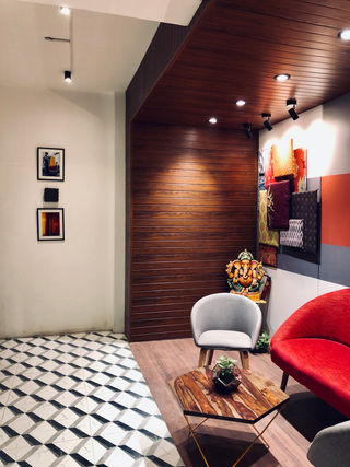 This 3,460 sq.ft factory space was to be converted into an office space for the online retail brand, which would accommodate their in house designers' studio spaces, the conference rooms, cafeteria, washrooms and cabins for the partners. Since the brand makes their own fabric and carries out their own printing/woven processes, the same was showcased in the interior design of their working spaces.